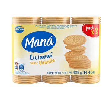 GALLETA ARCOR MANA VAINILLA 3UNX408G cantidad